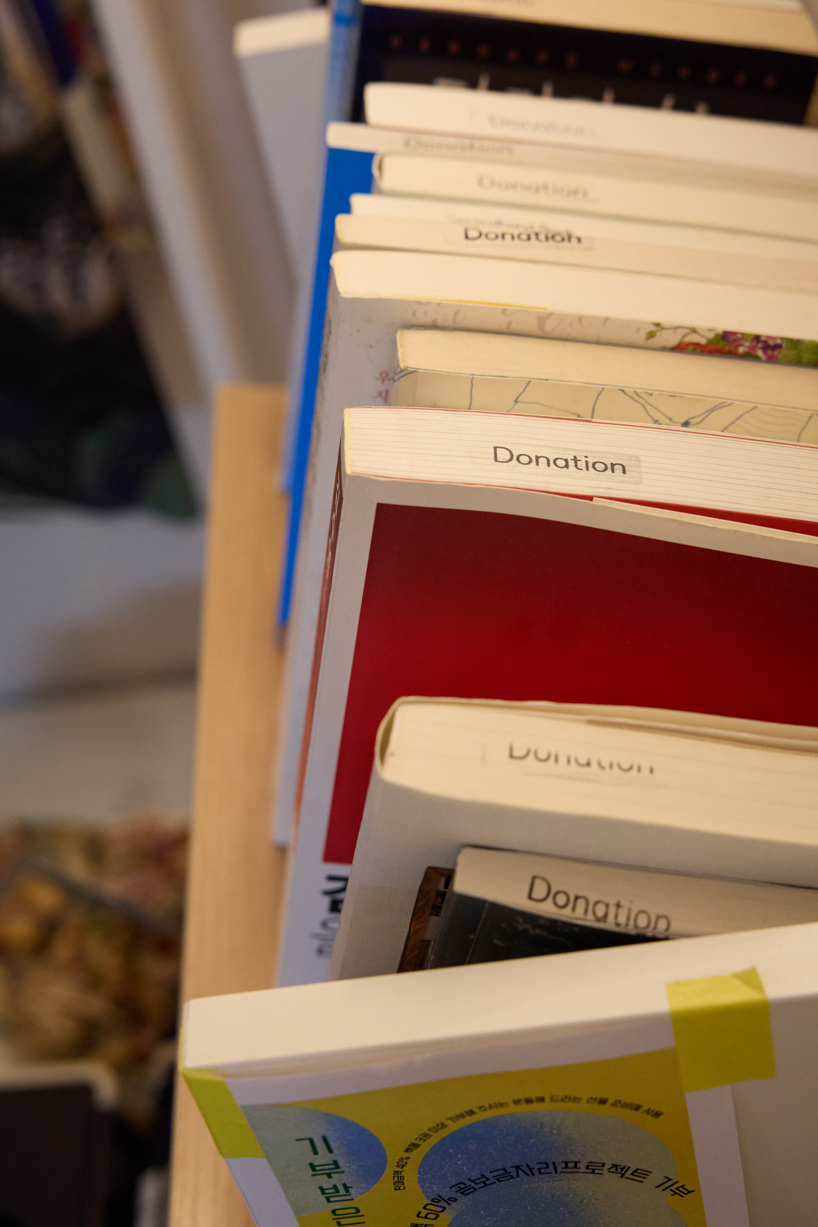 그래서 책방에 오시는 분들께 그 시스템의 일부가 되는 경험을 해드리고 싶은 거예요. 사실 저도 그냥 내가 번 돈 얼마만큼 떼어서 바로 기부할 수도 있죠. 그런데 번잡스럽다고 생각할 수 있는 이런 구조를 만든 건 하나의 기부를 통해서도 여러 사람과 함께 할 수 있는 공동체, 시스템을 만들고 싶었기 때문이에요. 우리 집에 있는 책 한 권으로도 할 수 있다는 거죠. 안 읽는 책을 내놓는 행동 하나만으로 나도 공동체의 일부가 될 수 있다는 경험을 할 수 있으니까요. 그 경험으로 위로받았으면 좋겠고, 그 경험으로 추락하지 않았으면 좋겠어요. |